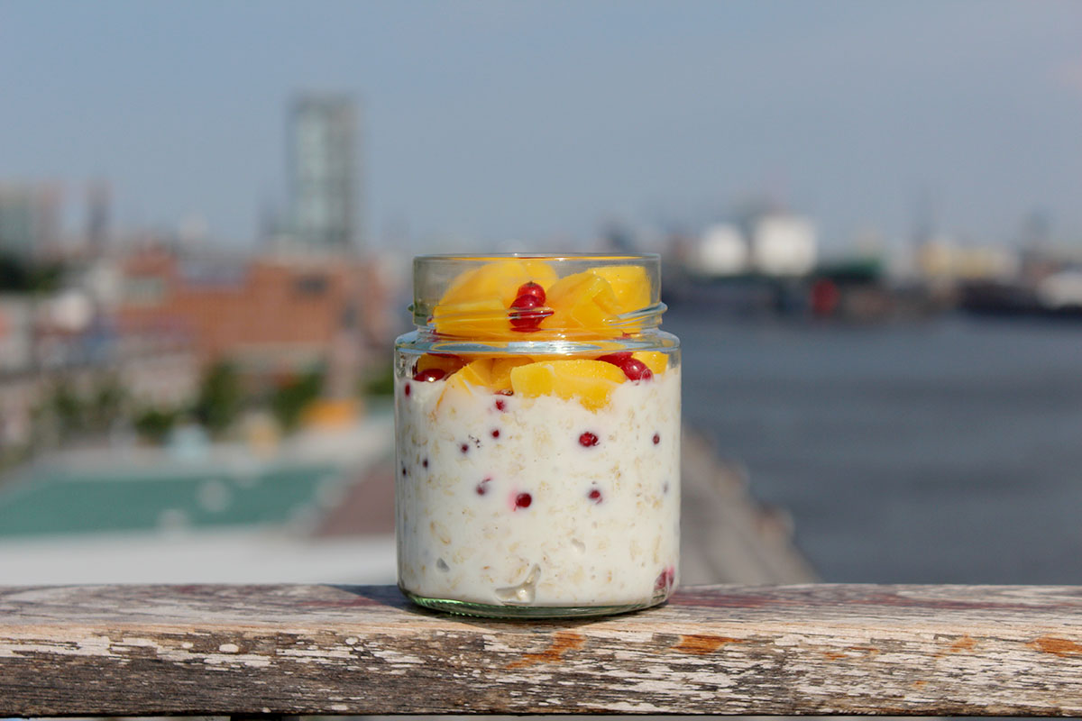 Auf geht’s zum Endspurt. Verratet uns noch bis heute Abend, was eure Lieblings-Overnight-Oats sind und gewinnt mit ein bisschen Glück einen satten Jahresvorrat Haferflocken! Auch wenn wir natürlich nicht gewinnen können, gibt’s heute unsere persönlichen Favoriten: Da wären zum einen die Cappuccino-Oats, die einen morgens so richtig nach vorne bringen. Erstens durchs Koffein und zweitens weil man sich die Zeit fürs Trinken des Kaffees spart. Wir machen diesen Blog ja zu zweit, also wollen wir euch auch unsere zweiten Lieblings-Oats verraten: Overnights mit Johannisbeeren und Mango. Herrlich sommerlich frisch und zuckersüß. Eine Traumkombination.